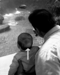 Ich nahm mir die Stelle noch mal genau unter die Lupe, konnte aber ausser den inzwischen immer mehr fehlenden Haaren nichts entdecken. Keine Rötung, keine Schuppen, keine kleinen Tierchen (Läuse oder Milben). Vielleicht biss es ihn einfach, weil die Haut trocken war? Ich versuchte es eine Zeitlang mit Olivenöl (dem Allerheilmittel für Babyhaut), aber ohne Erfolg. Erst später erfuhr ich, dass diese kahle Stelle bei Babys üblich ist – eine Nebenerscheinung davon, dass man sie auf dem Rücken schlafen lassen muss (wegen dem plötzlichen Kindstod). Von dem Moment an, wo sie anfangen sich selbst zu drehen und nicht mehr nur auf dem Rücken schlafen, geht diese Mönchstonsur von selbst wieder weg.