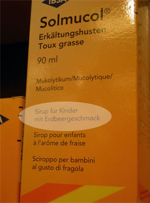 2. Inzwischen haben sie die Packung etwas angepasst (hat da jemand meinen Blog gelesen?) und „Sirup für Kinder“ ist fett geschrieben – was es optisch etwas abhebt vom „mit Erdbeergeschmack“. Schade :-)