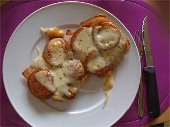 Ohne Tomate dafür mit Raclette-Käse anstatt Mozarella.