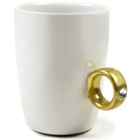 Was in der Geschenkbox aussieht wie ein Ring entpuppt sich als Tasse. Immerhin mit 2 Karat Gold (oder Silber) und Swarowsky Kristall.