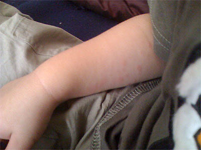 Ein Ausschlag. Und zwar nicht nur an den Armen, sondern auch an den Beinen, am Rumpf, wenig am Rücken und im Gesicht.