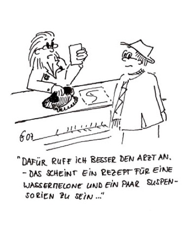 Peinlich wird es, wenn die Praxisassistentin (die eigene Frau) das zurück-gefaxte Rezept auch nicht entziffern kann.