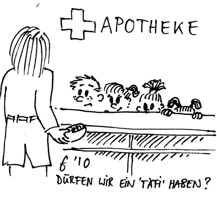 Ich geh manchmal ganz bewusst ohne die Rasselbande in die Apotheke, damit sie dort nicht denken, ich komme nur wegen der Gutsel fuer die Kids ;-)