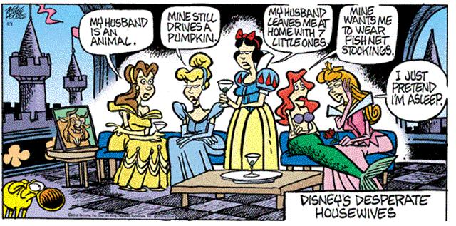 Im Bild oben einige der Disney-Prinzessinnen als „Desperate Housewifes“.