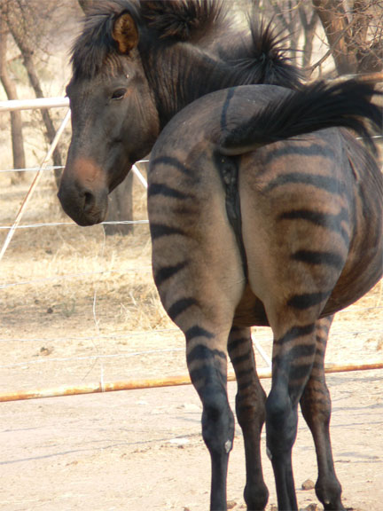 Auch in dem Fall war der Papa ein (wildes) Zebra und die Mama ein domestiziertes Pferd.