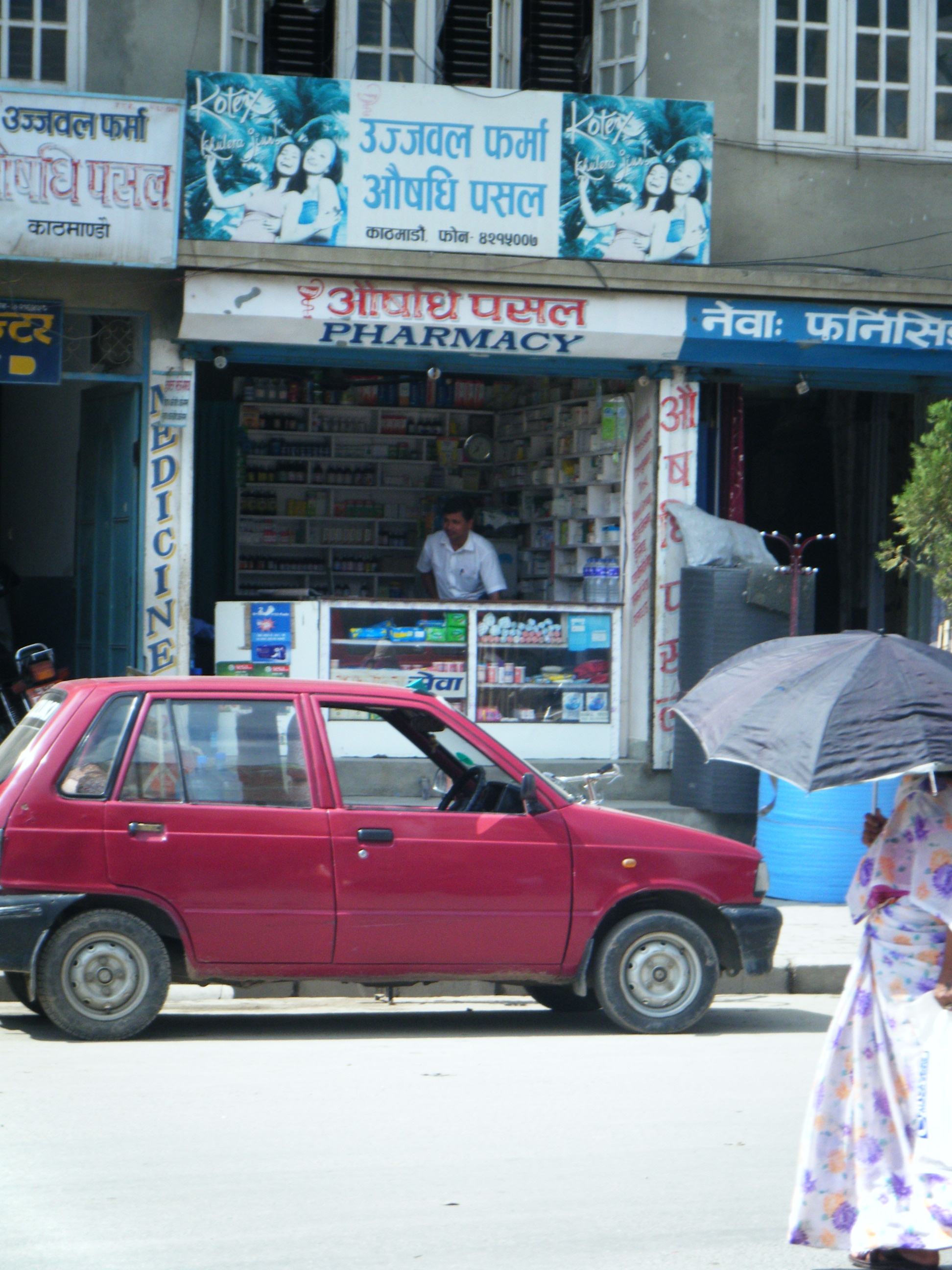 In diesen Apotheken gibt es eh keinen Impfstoff. Antibabypillen kosten 30 Cents, hergestellt in Nepal. Bessere Qualität hergestellt in Indien kosten 90 Cents. 100 Tbl. Antibiotikum kosten 10 Euros. Die Apotheker ersetzen jedoch hier die Ärzte, welche sich die Nepalesen für einen Besuch nicht leisten können.