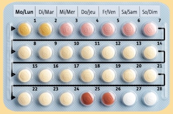 „Jeder Packung liegt ein Blatt mit 7 selbstklebenden Wochentagsstreifen bei. Um die Packung gebrauchsfertig zu machen, müssen Sie den Streifen, auf dem links der Wochentag des Einnahmebeginns steht, abziehen und auf die Tabletten-Packung beim Vermerk «Wochentagsstreifen» aufkleben, damit der erste Tag oberhalb der mit «1» markierten Tablette ist. Hierzu ein Beispiel: Ist der erste Einnahmetag ein Mittwoch, so wird der Wochentagsstreifen, der links mit «Mi» beginnt, auf die Packung geklebt. Damit ist jede weitere Tablette mit dem dazugehörigen Einnahmetag markiert und es ist jederzeit möglich, mit einem Blick zu kontrollieren, ob die tägliche Tablette eingenommen wurde.