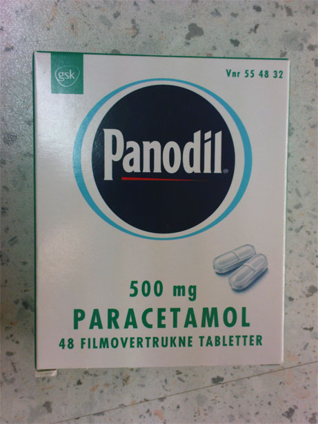 Die Panodil-Packung entspricht ziemlich dem hiesigen Panadol – nur dass da 48 Stück drin sind, bei uns maximal 20.