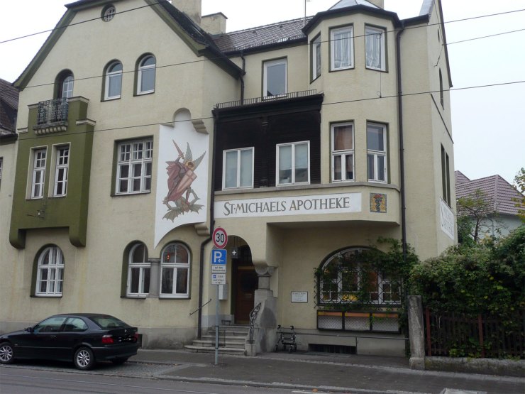 Leider ist es keine Apotheke mehr, es ist jetzt ein Arzt drin. Das Bild von St. Michael und die Apothekenschrift sind aber noch vorhanden und gefallen mir sehr gut. Ach ja, fast vergessen: das Haus steht in Augsburg.