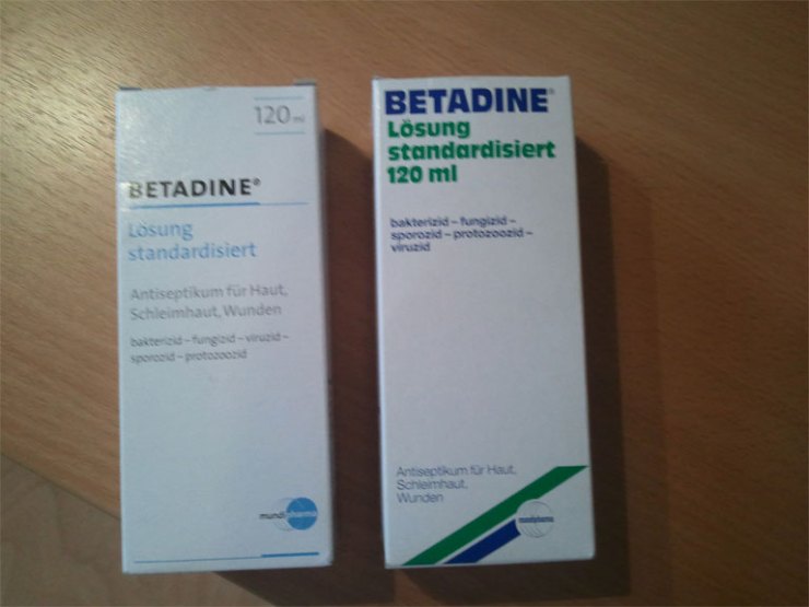 Die Betadine-Packungen fand und finde ich nicht besonders gut. Da sehen alle so gleich aus, man muss wirklich gut lesen, ob man jetzt die Lösung, die Seife, das Gurgelmittel oder was auch immer in der Hand hat.