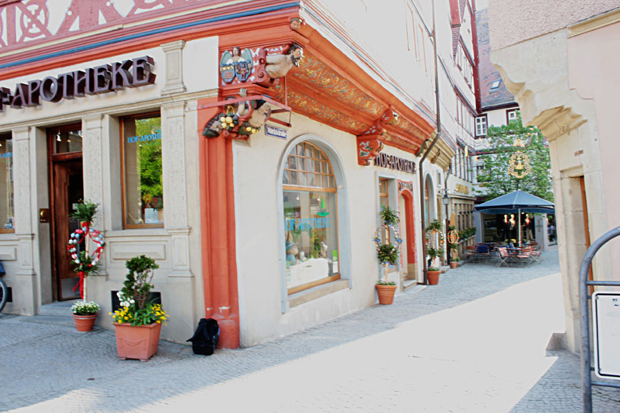 auf meiner letzten Radwanderung sind mir ein paar Apotheken aufgefallen, die ich gleich abgelichtet habe für Deinen Blog: Da wäre als erstes die Hof-Apotheke in Öhringen: