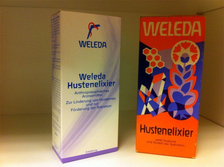 links die neue, rechts die alte Packung – der sieht man den anthropospohischen Gedanken doch noch richtig an! Pflanzlich, mineralisch und tierisch – alles drin. Dazu dieses 70er Jahr Orange …
