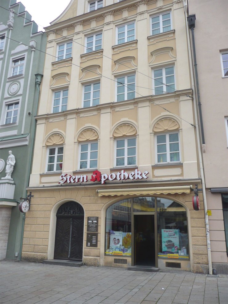 Also, hier mal wieder eine Apotheke. Es ist die Stern-Apotheke in Augsburg am Moritzplatz. Im Internet konnte ich leider nicht mehr über die Apotheke in Erfahrung bringen. Ich hoffe, sie gefällt Dir trotzdem.
