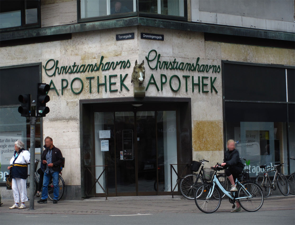 Die Apotheke befindet sich auf der (künstlichen) Insel Christianshavn, südöstlich der Innenstadt, mit noch intaktem Kanalsystem aus dem 17. Jahrhundert :-O Zu dem Stadtviertel muss noch erwähnt werden, dass sich dort die Freistadt Christiania befindet, eine vom Staat Dänemark weitestgehend unabhängige Hippie-Kommune. Tante Wiki weiß es ausführlicher ;-)