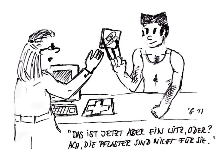 1. aber liebe Pharmama, Du weisst doch ganz genau, dass Pflaster auch noch einen anderen Zweck haben, als schnöde Wundabdeckung