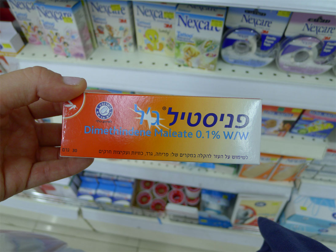 Das Fenistil ist Dank Verpackungsdesign sogar in hebräischer Schrift wiedererkennbar :-)