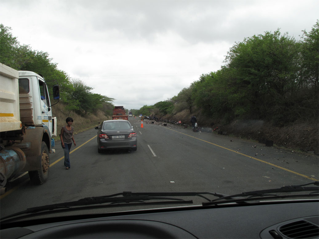 Das ist eine Geschichte aus den Ferien, die ich Euch noch nicht erzählt habe. Wir fuhren ja selber, was meist gar kein Problem ist (Johannesburg und Durban mal beiseite-gelassen). Wir haben vor etwa 1 Stunde Swaziland hinter uns gelassen und waren auf dem Weg weiter südwärts durch Südafrika auf der N2.