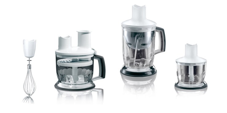 Für den Stabmixer gibt es noch mehr Zubehör: den aufsteckbaren Schwingbesen für Schlagrahm und Eiergerichte und den 1Liter Universalmixer für alles vom Eis-cruschen, Fleisch häckseln bis Cocktails mixen.