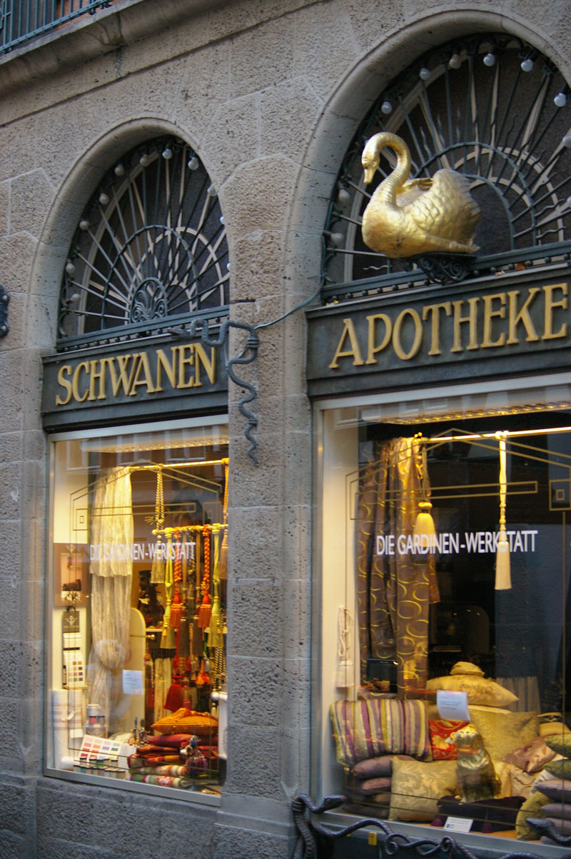 Die Schwanenapotheke hat leider geschlossen als ich noch ein kleines Kind war, seit etlichen Jahren ist in den Räumen ein Gardinengeschäft.. Also zählt es nur noch halb als Apothekenbild.. ;-)