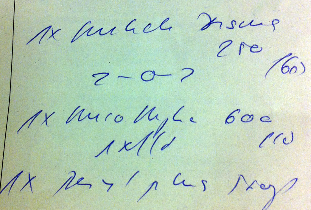 2. Die meisten Ärzte haben ein beschränktes „Repertoire“ an Medikamenten, die sie aufschreiben. Es sind oft die gleichen 20 – 30 Medikamente, die man mit der Zeit erkennt, selbst wenn es dann noch so dahingesudelt ist.