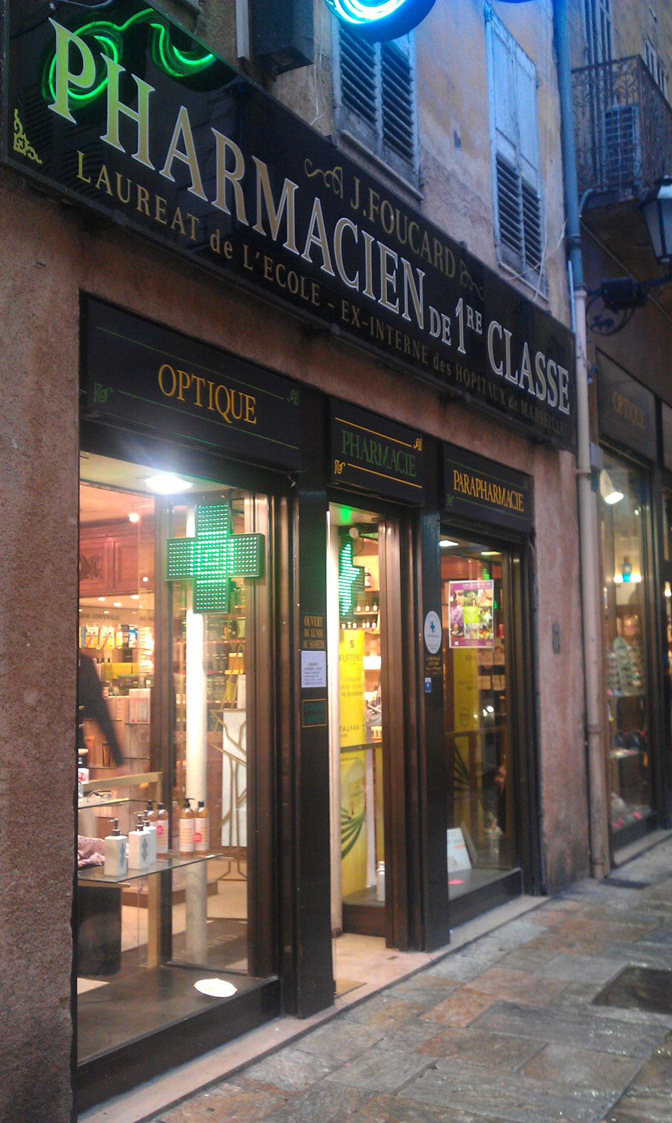 Grasse: Die Apotheke habe ich im Vorbeifahren gesehen. Mussten extra noch eine Runde im Kreisverkehr drehen damit ich die Bilder machen konnte. Grasse liegt in der Nähe von Cannes und ist berühmt für seine Parfum-Manufakturen