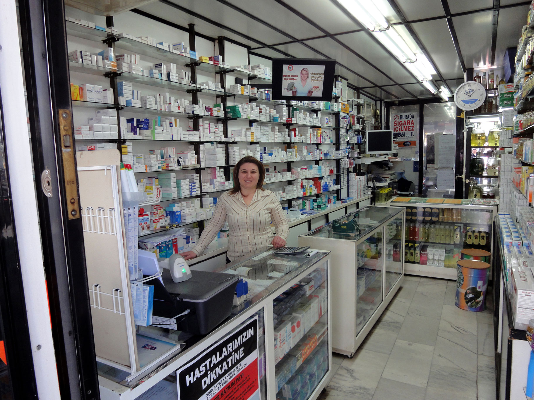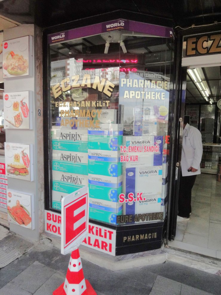 Die „Besitzerin“ ist aber vermutlich eine stolze Angestellte. Der Besitzer dürfte Apotheker Hasan Kilit sein (wenn ich mal eczanesi mit Apotheker übersetze). Trotzdem schön, stolze frphe Mitarbeiter zu haben in einer kleinen feinen Apotheke.