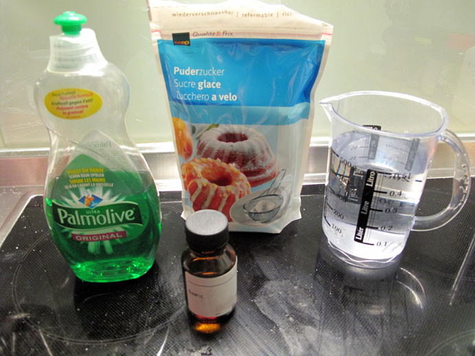 Danke für die schöne Anleitung. Gut übrigens das du die Zutaten auch abgebildet hattest, so mußte ich mir nicht lange überlegen was Staubzucker ist (in Deutschland heißt das Puderzucker). Die Seifenblasen sind ja wirklich riesig.