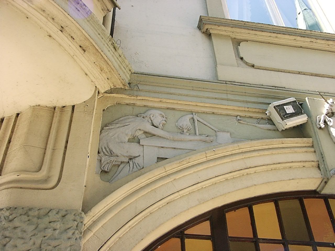 Hmm.., den Henselkasten bei dem freundlich vor sich hin destillierenden Herrn hätte man aber auch etwas liebevoller befestigen können :)