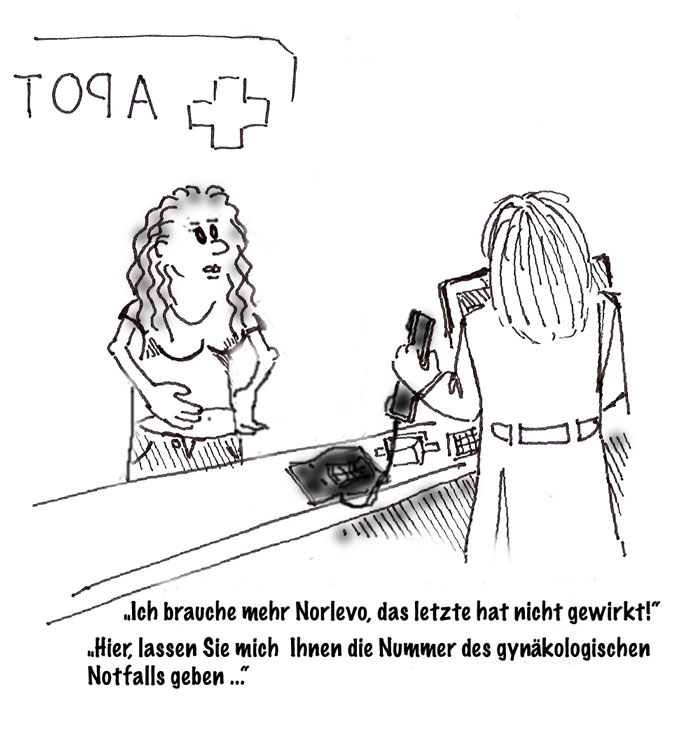 Aber nun im Ernst: Genau wegen dieses Cartoon-Beispiels bin ich recht glücklich, dass es in D die „Pille danach“ eben nicht nach Fragebogen – sondern nur auf Rezept gibt. Ich gebe offen zu: Solche Diskussionen erspare ich mir gerne – zumal ich vermute, dass die „korrekten“ Antworten für die Beratungsdokumentation als Sammelblatt garantiert irgentwo im Netz kreisen…