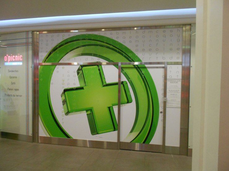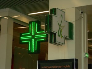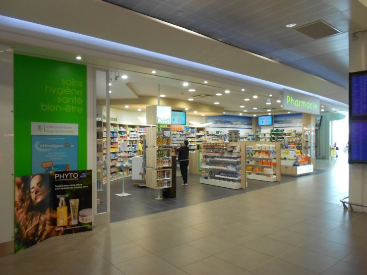 jetzt habe ich dir mal wieder ein paar Bilder von einer Apotheke gemacht. Zwar ist es keine wirklich besondere, aber ich dachte vielleicht willst du die auch haben. Es ist die Apotheke im Flughafen Lyon Saint Exupery, wie gesagt nichts besonderes aber vielleicht auch zeigens-, erwähnenswert. Da wären zwei Bilder bzw Perspektiven der Apotheke (da war leider ne Säule sonst hätte ich sie gerne frontal gehabt), einmal das Kreuz welches links von der Apo als „Wanddeko“ war und dann hab ich dir noch das obligatorische franz. Blinke Kreuz fotografiert.