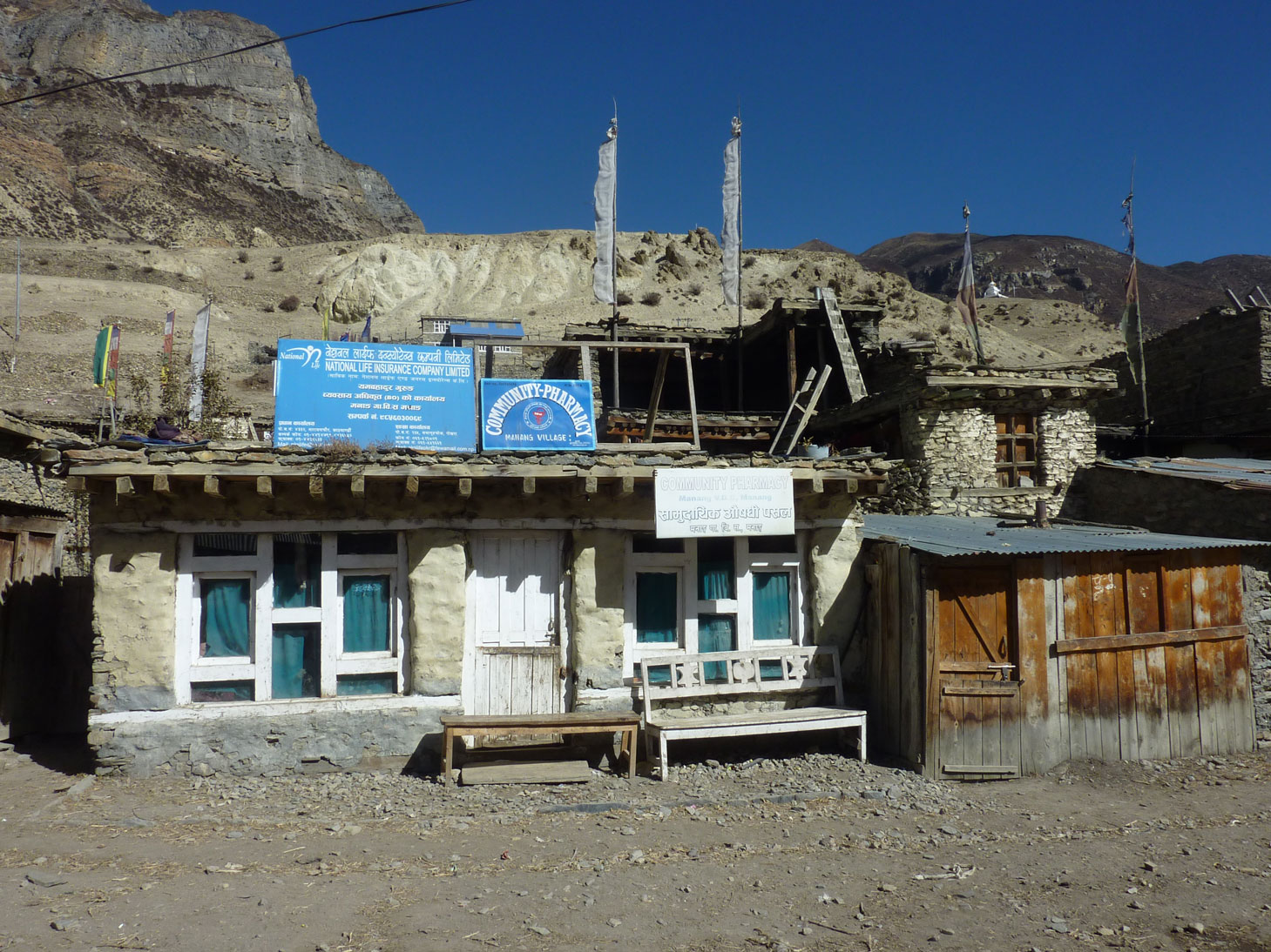 Die (einzige) Apotheke in Manang, ein etwas größerer Ort am Annapurna Circuit Trek. Gelegen auf etwas über 3500m, wirst wohl so schnell keine höhergelegenere Apotheke mehr finden ;-)