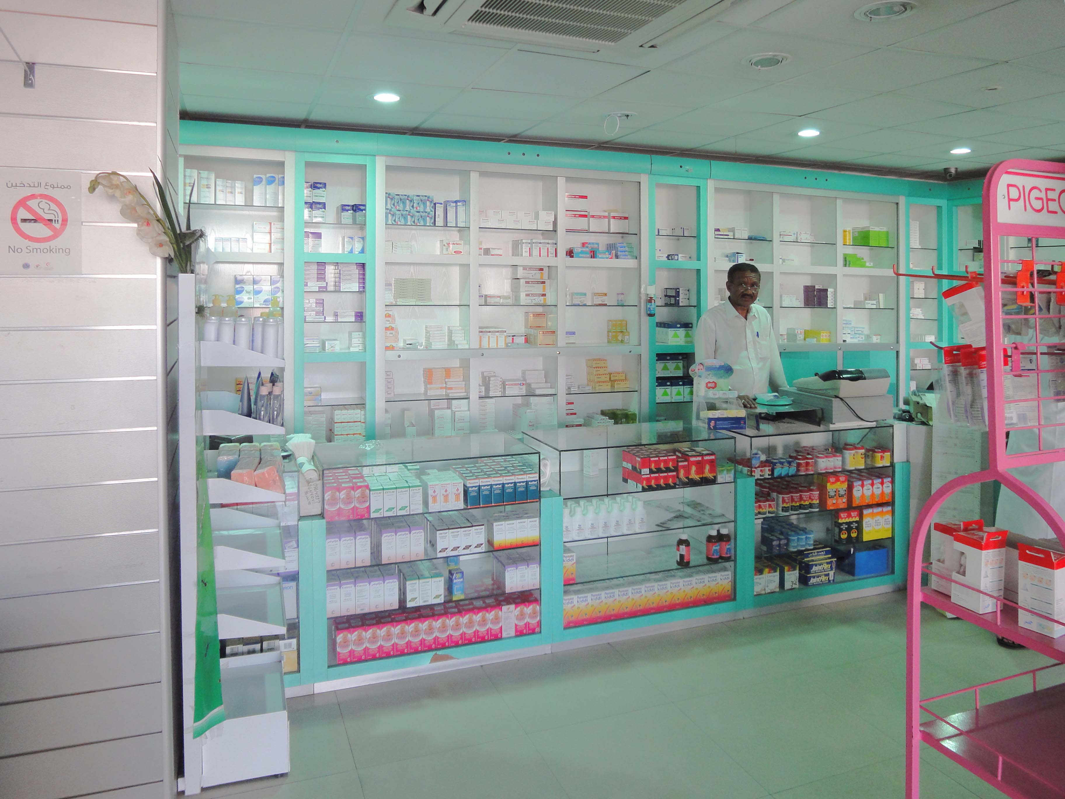 Im Anhang findest Du ein paar Fotos einer Apotheke in Salalah/Oman. Auf unseren Wunsch hat uns der Driver extra dorthin gefahren. Für das Foto wollte sich der Apotheker noch in seine Oman-Kleidung umziehen! Wegen der Zeit musste ich leider ablehnen. Als der jetzige Sultan vor 40 Jahren das Ruder übernahm, gab es in Oman kein richtiges Krankenhaus und vermutlich auch keine richtige Apotheke.