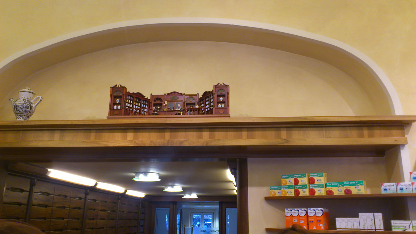 Am Wochenende war ich aber mal wieder in Coburg, der Stadt mit dem Mohren im Stadtwappen. Dort ist mir mal wieder die Mohren-Apotheke aufgefallen, die ein sehr hübsch geschmücktes Fenster hatte, eine meiner Meinung nach gut gelungene Mischung aus modern/zweckmäßig und traditionell gefunden hat. Besonders die kleine Apotheke auf über dem Durchgang zu den hinteren Räumen hat mir sehr gefallen.