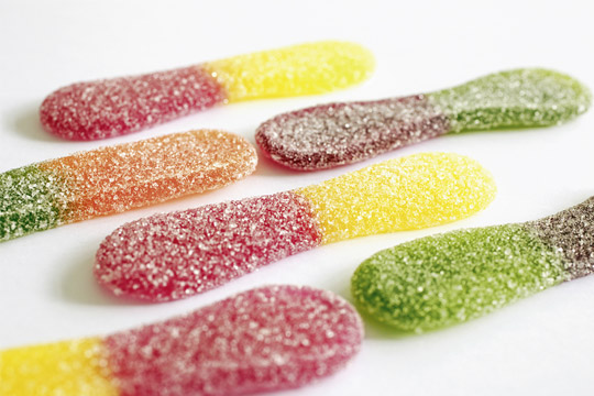 Angesichts dessen, dass die Dinger mit Zitronensäure (Acidum citricum) besprenkelt sind. könnte man sie als Zwischending zwischen Lebensmittel und Chemikalie ansiedeln …
