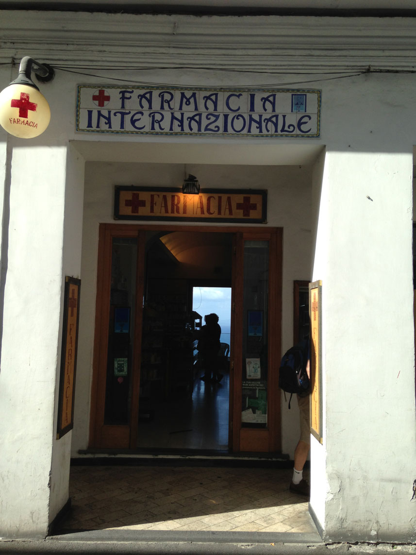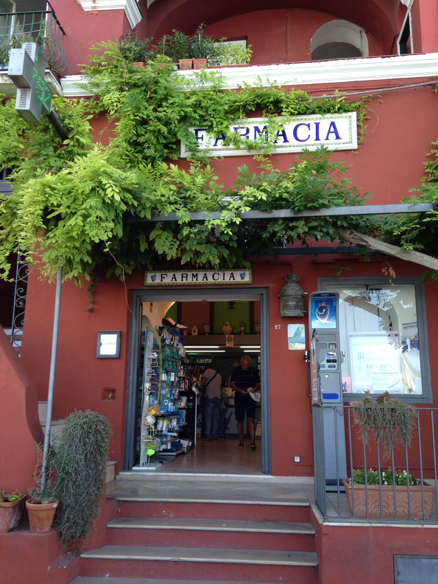 Und dann habe ich noch 2 Apotheken auf Capri geknipst – da war vor allem die erste super: Mit wunderbarer Aussicht den Hang hinunter aufs Meer und über den Golf von Neapel. Wäre wohl kein schlechter Arbeitsplatz… die zweite war direkt am Hafen von Capri.