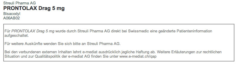 Nach neuen gesetzlichen Vorschriften von Anfang 2013 gibt es die swissmedicinfo, wo die Pharmafirmen alle ihre Arzneimittelinformationen und Änderungen derselben angeben müssen.