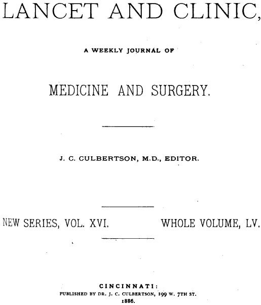 Ausschnitt aus der wöchentlichen Zeitung Lancet Medicine and Surgery von 1886