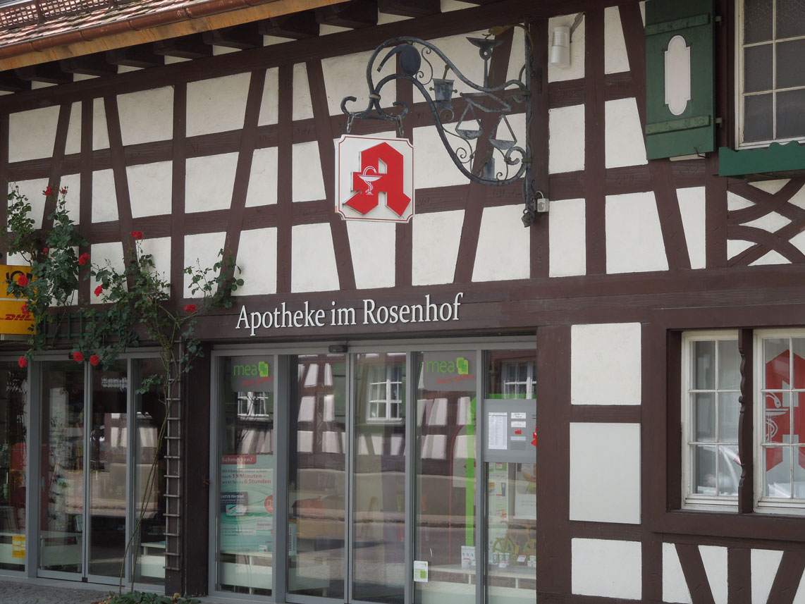 Hier erstmal die „Apotheke im Rosenhof“ welche in Bermatingen im Bodensee Hinterland ist. Diese Fachwerkhäuser gibt es in Bermatingen durchaus einige.