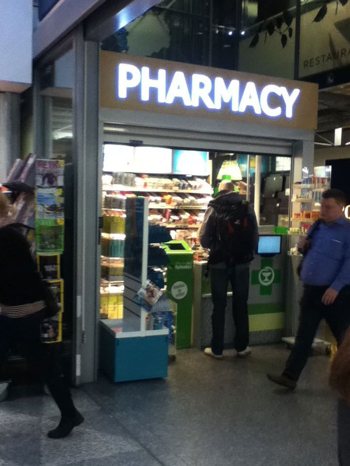 Die kleine Apotheke am Flughafen Helsinki ist im Bereich nach der Sicherheitskontrolle. Ich fand die recht putzig, so mini und klein.
