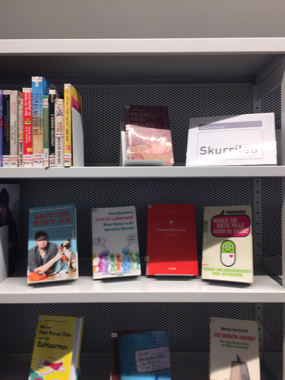 Also dass Dein Buch (kategorie-technisch, aber eben auch direkt) unter „Skurriles“ steht… und zwei Bücher links „Lost in Laberland“ zu finden ist… Aber immerhin bist Du direkt beim „Sammelsurium Schweiz“. :D