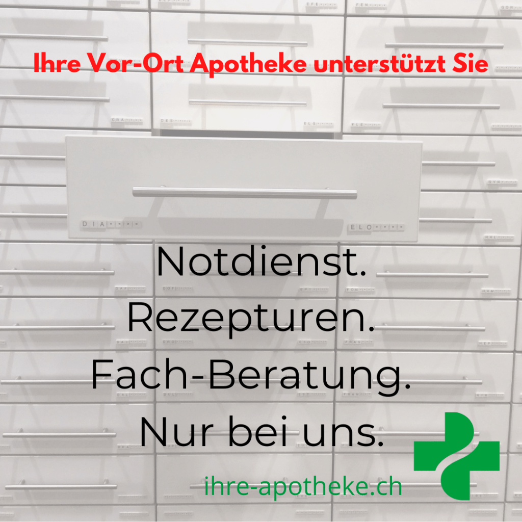 Nur eine Erinnerung zwischen den Jahren. Darf gerne geteilt werden, heruntergeladen und weiterverbreitet (auch nur auszugsweise). Die Online Apotheken hier (eigentlich nur eine, aber da steckt so viel Geld dahinter) nutzen die Covid-Situation ja sehr zu ihren Gunsten und machen Werbung mit ihren Medikamentenlieferungen. Dabei geht bei vielen Leuten vergessen: Hauslieferungen machen die Apotheken schon ewig. Jetzt um so mehr. Sichere Übergabe und keine unterwegs verlorenen oder verspäteten Päckli inklusive … und man muss auch nicht auf die Post anstehen zum abholen.