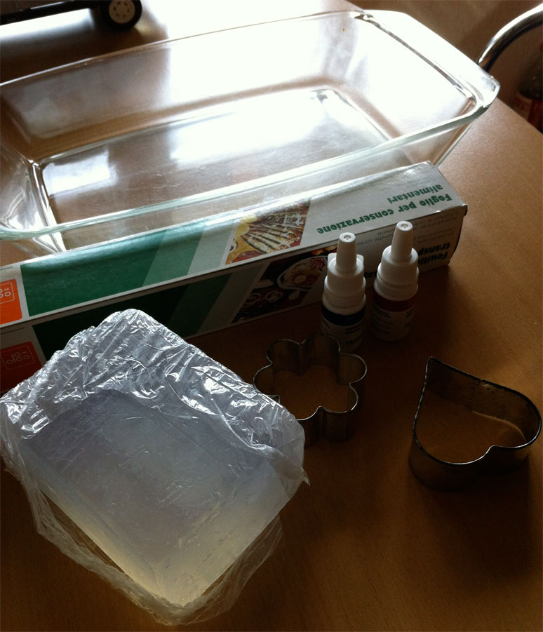 3. Glycerinseife in Gratinform giessen und erstarren lassen (dauert ca. 20-30 Minuten)
