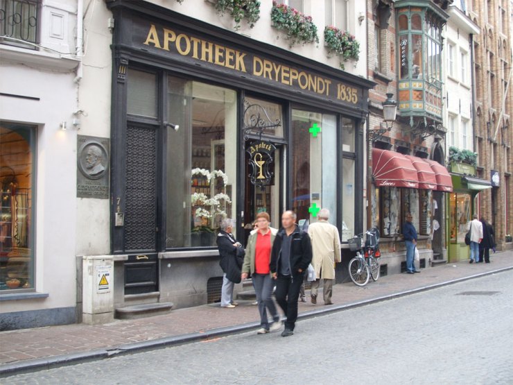 Die Apotheke auf dem angehängten Bild steht im schönen Städtchen Brügge in Belgien. Das Foto ist vor mehr als drei Jahren entstanden, als ich den Blog hier noch gar nicht kannte, aber schon damals hat mich die schöne alte Fassade angesprochen.