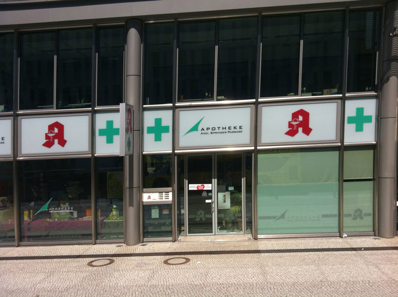 Ich schicke dir noch eine Apotheke aus Berlin. Sie befindet sich im Zentrum in der Nähe des Checkpoint Charlie.