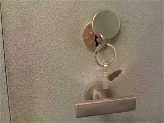 Ja, genau. Wie üblich bei einem Feueralarm schaut man erst mal, wo der Alarm ab ist (auf dem Brandmelder-tableau) und schickt jemanden nachsehen. Unser Feuerwehrmann geht also hin, öffnet die Türe und trifft 2 Leute an, die gerade dabei sind einen ziemlich grossen Tresor aufzuschweissen.