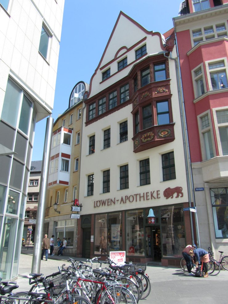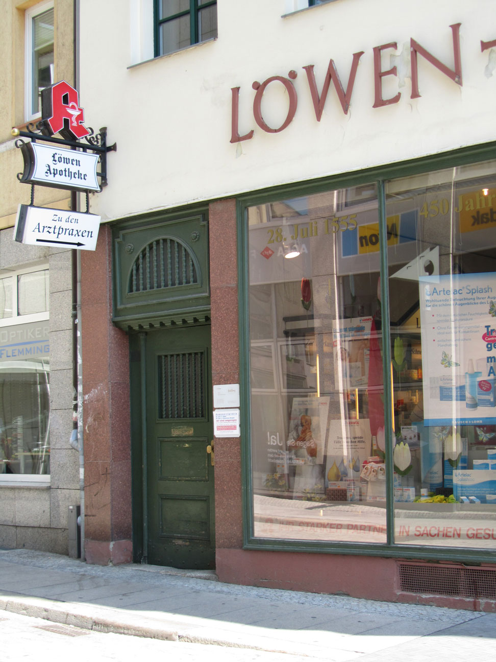 Die Apotheke liegt idyllisch im Umfeld von alten Industriebrachen; Wohnhäuser oder Einkaufsmöglichkeiten gibt’s dort auf mehrere hundert Meter nicht viele. Lediglich direkt gegenüber sind alte Industriehallen, welche u.a. für eine relativ große Jugendwerkstatt (guter, betreuter Jugendclub) und eine KfZ-Werkstatt genutzt werden.