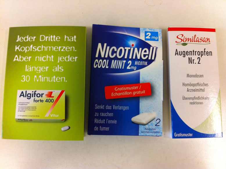 Pharmama: „Immer seltener, ja. Die Firmen sind auch nicht mehr so spendabel, was Muster angeht – und ganze Taschenapotheken zum verschenken habe ich schon Jahre nicht mehr gesehen. Ein paar Pflaster hätte ich vielleicht noch …“