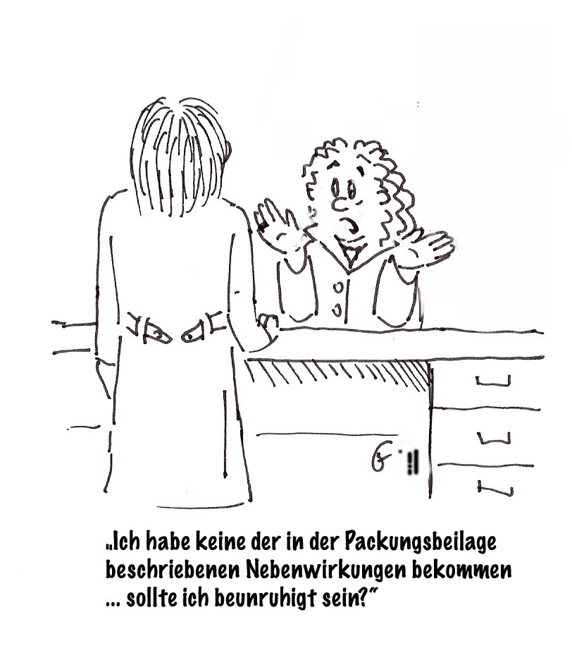 Okay, das hatte ich so noch nicht, aber zumindest eine Frau hat mich einmal gefragt, ob das Mittel überhaupt wirkt. Sie merke gar nichts, weder Wirkung noch irgendwelche Nebenwirkung. Gut, bei einem Cholesterinsenker erwarte ich auch nicht, dass man selber etwas „spürt“ – da ist die Wirkung höchstens im Blut messbar und zeigt sich (hoffentlich) darin, dass sie keinen Herzinfarkt bekommt – also eigentlich ist das Nicht-spüren ja gut :-)