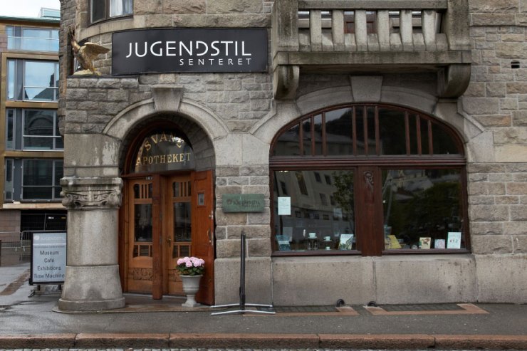 Das Haus beherbergte sowohl die eigentliche Apotheke wie auch die Wohnräume des Apothekers und seiner Familie. Bis 2001 diente es als Apotheke. Seit 2003 befindet sich darin das Jugendstilcenter mit Museum und „Time Machine“, die einen zurück ins Jahr 1904 führt, als die Stadt abgebrannt ist. Außerdem kann man die Einrichtung bewundern und erfährt durch einen Film (auf Englisch) einiges über den Jugendstil in Europa. Ferner laufen ständig wechselnde Ausstellungen. -> Hier die Webseite des Jugendstilcenters: http://www.jugendstilsenteret.no/