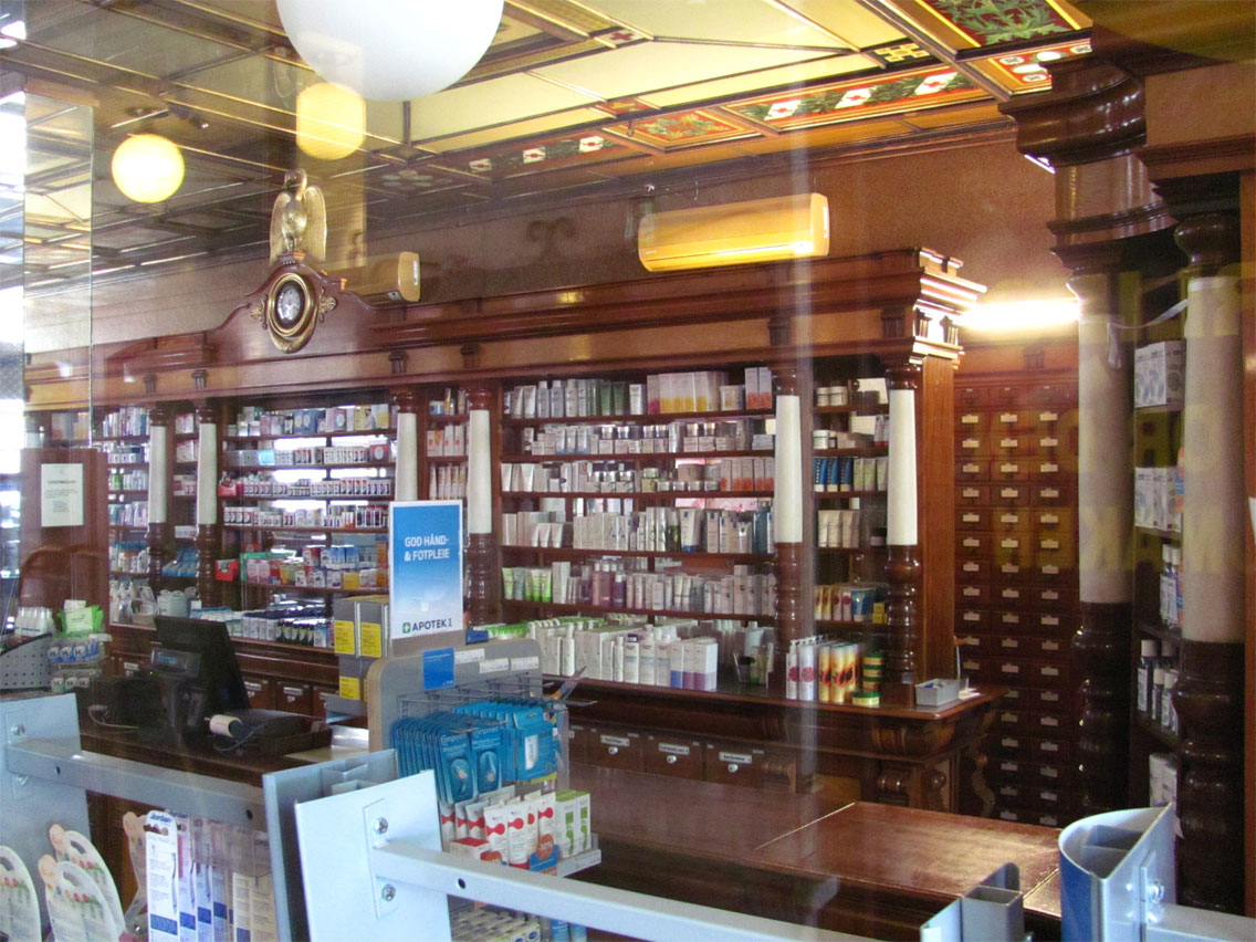 Das letzte Foto zeigt eine aktive Apotheke in Ålesund, die auch in einem recht schönen Haus untergebracht ist. Apotek 1 scheint eine Kette zu sein, das habe ich mehrmals gesehen. Die Inneneinrichtung habe ich nicht fotografiert, die ist modern und unspektalulär.